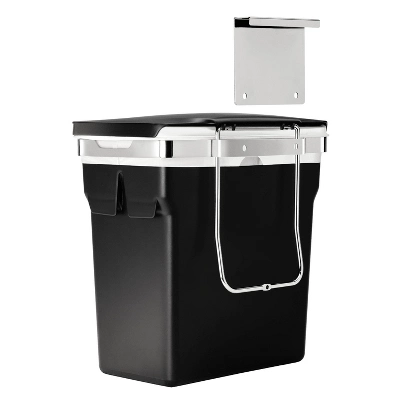 This in-cabinet can hangs inside your kitchen cabinet door for quick and easy access while you are busy at the kitchen counter. The heavy-duty steel frame hooks securely onto the door or can be screwed in for a permanent mount. It also holds a durable plastic bucket that keeps your cabinet free from messy spills and lifts out for easy cleaning. Although the bucket is grocery bag compatible, the code R custom fit liner fits this can perfectly — no bunching or slipping for a cleaner trash experience.