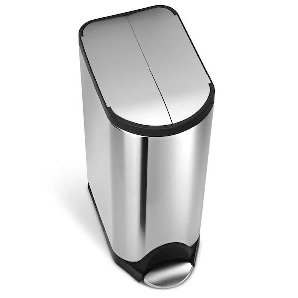 The simplehuman butterfly step can has an innovative butterfly lid design that opens from the center for maximum clearance under low countertops. The slim, space-efficient shape makes the most of tight spaces. The strong steel pedal and patented lid shox technology ensure the can will function smoothly and quietly for years. The code H liner fits this can perfectly — no bunching or slipping for a cleaner trash experience.