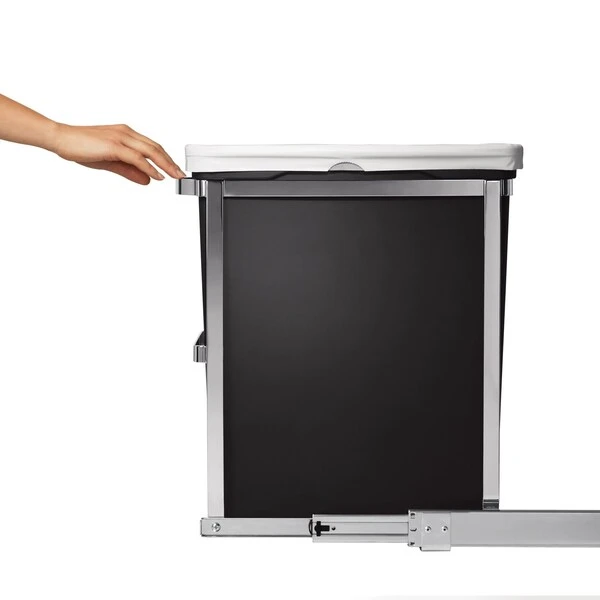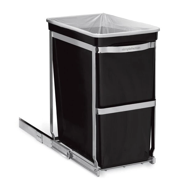 Keep trash concealed inside the cabinet. The easy-to-install pull-out can glides out of the cabinet on smooth ball-bearing tracks for quick and easy access. The simplehuman code K liner fits this can perfectly — no bunching or slipping for a cleaner trash experience.