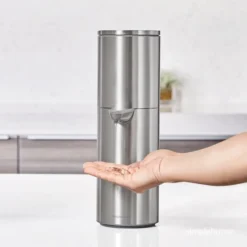 The simplehuman touch-free sensor pump max is built for business, but is also perfect for busy households. It makes it easy for anyone to wash their hands using soap or sanitizer without leaving any germs behind for the next user – keeping them clean and safe. It has a clog-proof tubing pump that ensures a precise and consistent flow, and the silicone valve prevents messy drips. To control the amount of soap desired, you can position your hand up close to the sensor for a little soap and farther away for more. Its secure lid can only be opened to refill using the included tool, while the large opening makes refills fast and easy. It’s powered by four D-cell batteries that can last up to a year. The sensor pump max comes with a 32 fl. oz. fragrance free hand sanitizer refill pouch and optional wall mount bracket (screws included) so you can mount it up and out of the way, and its elegant design enhances and elevates any surrounding. Use simplehuman soap or sanitizer for optimum pump performance.