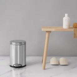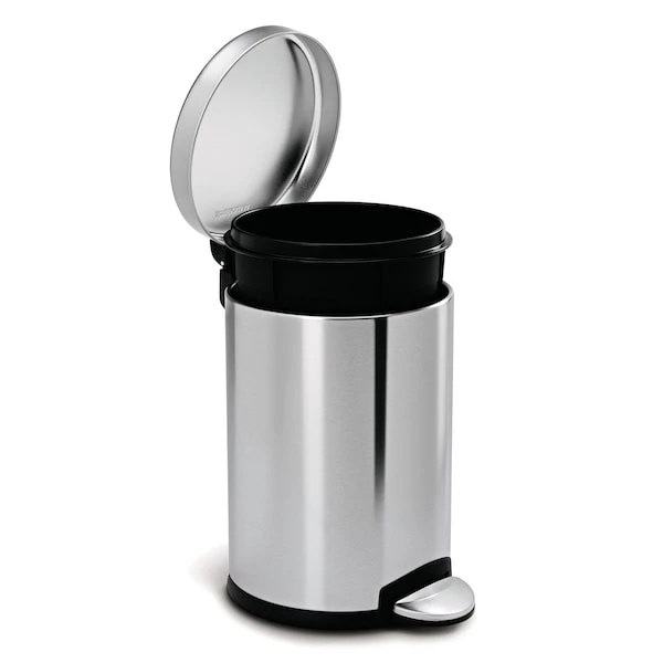 This compact classic round step can is perfect for smaller spaces like a bathroom or an office. The strong steel pedal is built to last, and lid shox technology ensures a smooth, silent close every time. A removable inner bucket makes for easy trash disposal. The simplehuman code A liner fits this can perfectly — no bunching or slipping for a cleaner trash experience.