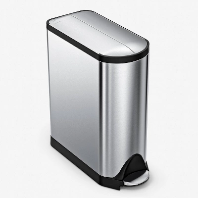 An innovative butterfly lid design opens from the center for maximum clearance under low countertops. Two inner buckets and a slim, space-efficient shape make it easy to do all your trash and recycling in one convenient place. The strong steel pedal is designed to last, andd our patented lid shox technology ensures a smooth, silent close every time. simplehuman’s Code D custom fit liner fits this can’s blue and black inner buckets perfectly — no bunching or slipping for a cleaner trash experience.