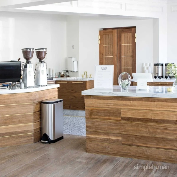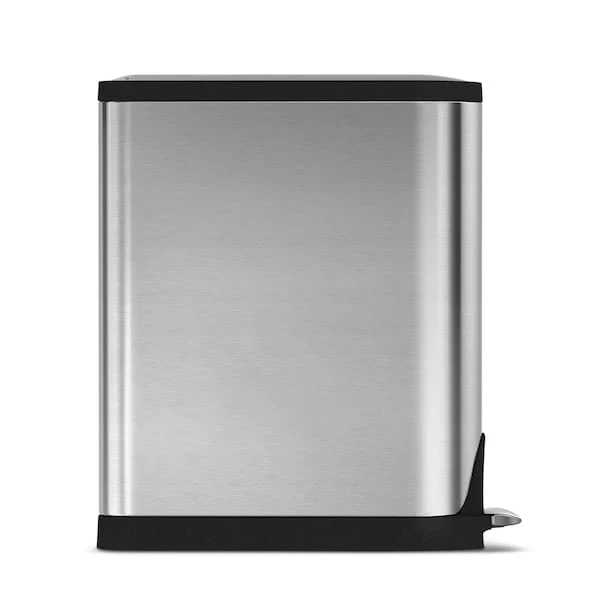 The simplehuman butterfly step can has an innovative butterfly lid design that opens from the center for maximum clearance under low countertops. The slim, space-efficient shape makes the most of tight spaces. The strong steel pedal and patented lid shox technology ensure the can will function smoothly and quietly for years. The code K liner fits this can perfectly — no bunching or slipping for a cleaner trash experience.