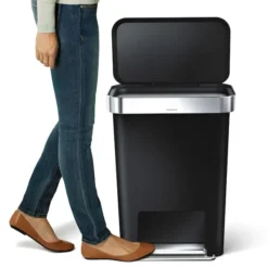 The simplehuman rectangular step can features an innovative ‘liner pocket’ that stores and dispenses liners from inside the can for a faster liner change. The stainless steel liner rim grips the liner and keeps it hidden. And with no inner bucket, there’s more space for trash. Strong wide steel pedal is designed to last, and patented lid shox technology ensures a smooth, silent close every time. Code K liner refill packs store perfectly in this can’s liner pocket.