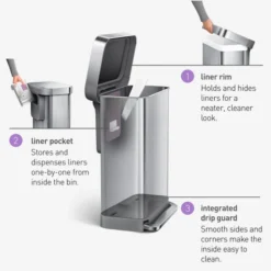 Made with a sleek and modern brushed steel finish, this pedal bin with a liner pocket to store and dispense bin liners is a stylish kitchen solution when it comes to simplifying your chores and keeping waste out of sight. The great 45-litre capacity allows ample space for waste disposal, great for families or large households and features quiet closing technology to prevent disturbance, pedal operation for hygienic and functional benefits, and an invisible silver-ion coating designed to resist fingerprints and to keep smudge marks to a minimum. With a 10-year warranty included, you can be sure that the reliable simplehuman brand will serve you well.