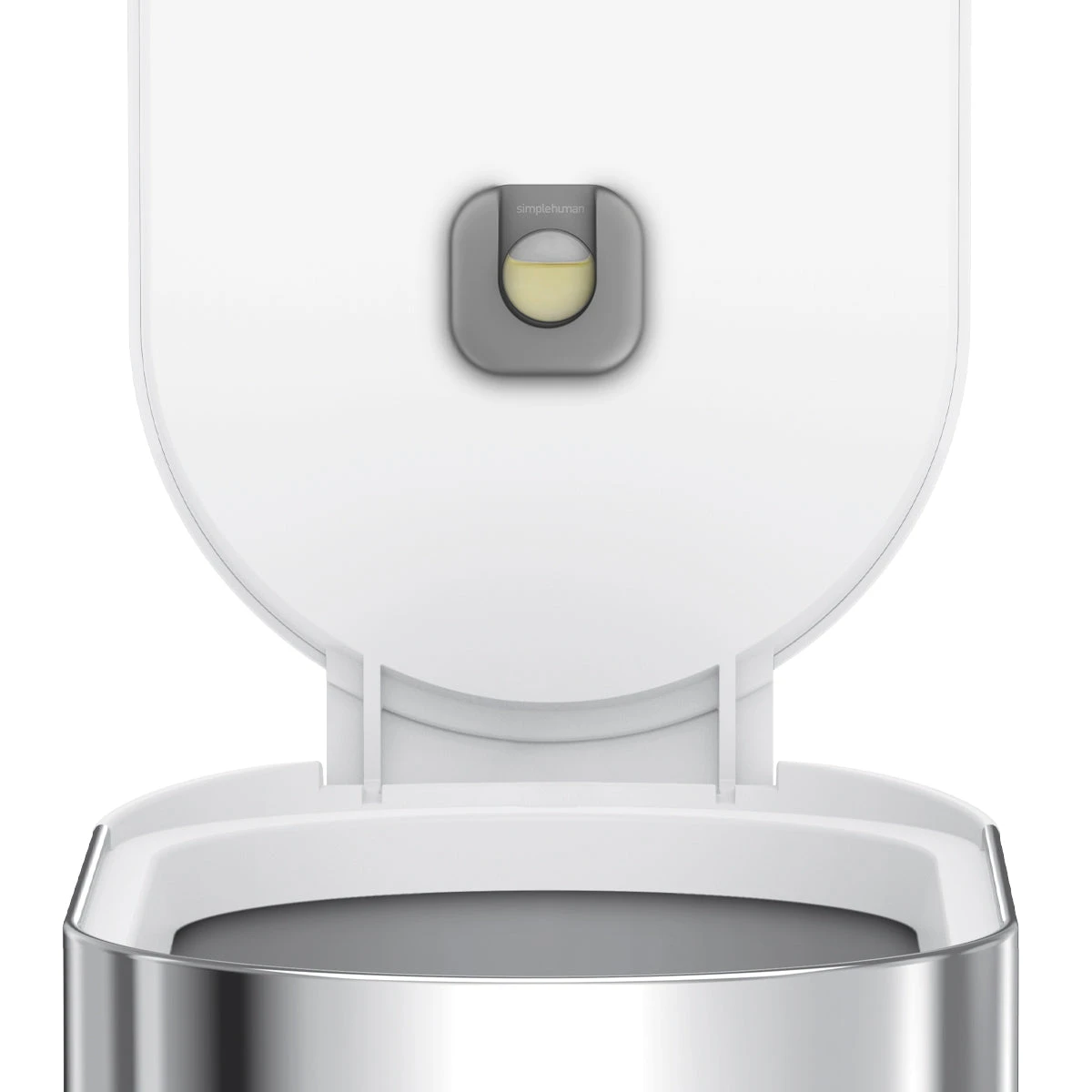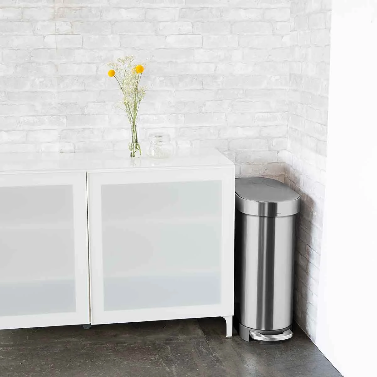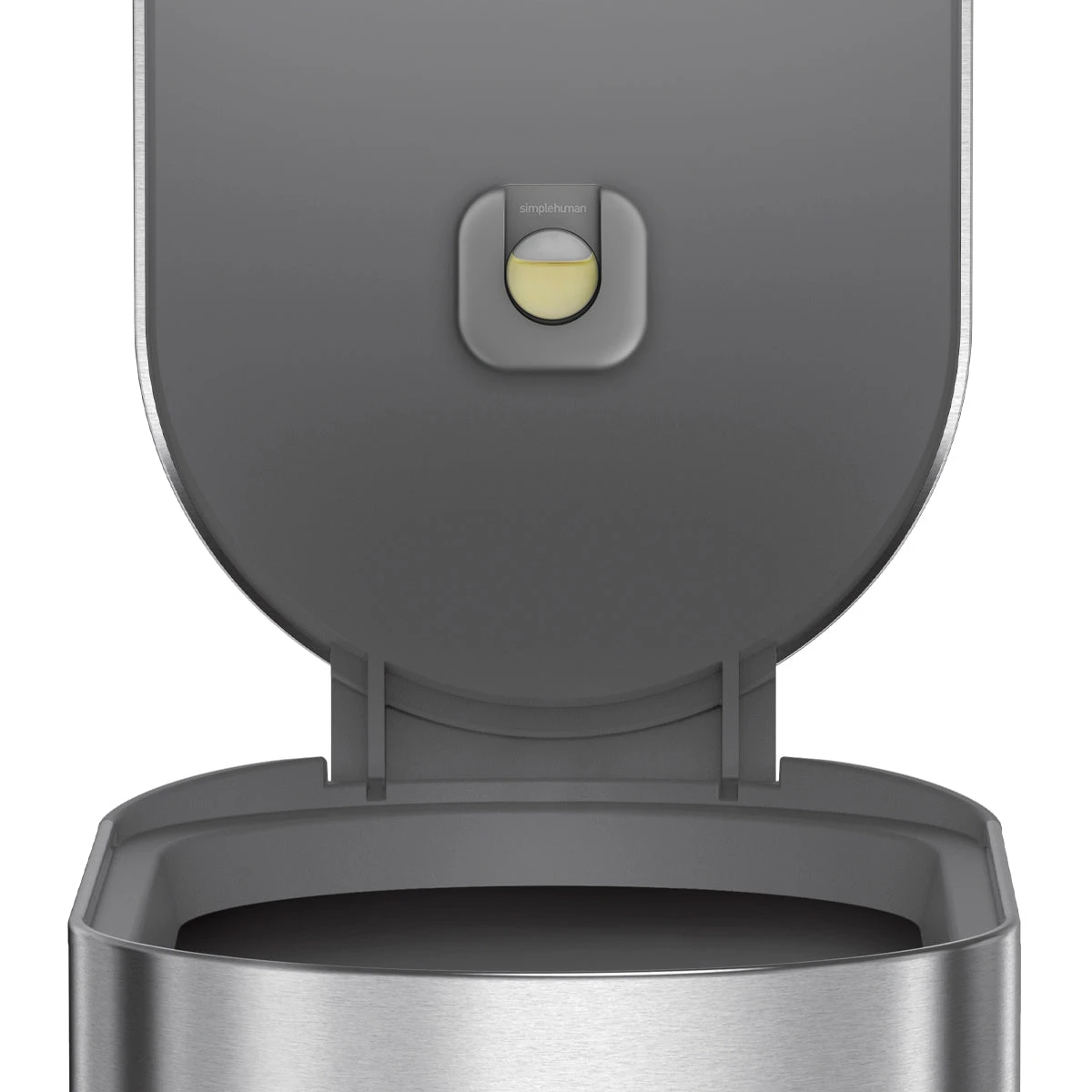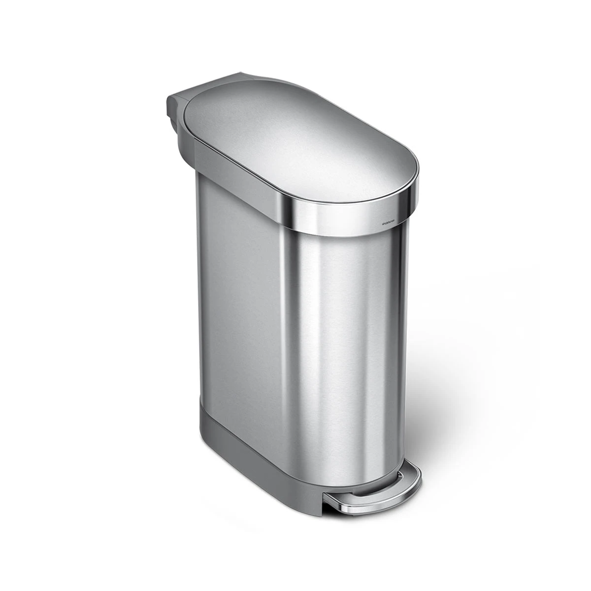 Space-efficient shape fits perfectly in tight spots, like between cabinets. Liner rim lifts up for easy access to the liner, then closes to grip and keep it neatly out of sight. The strong steel pedal is built to last, and lid shox technology ensures a smooth, silent close every time. The can’s stainless steel surface is protected by an invisible silver-ion coating that resists fingerprints and germs (brushed model only). Our Code N custom fit liner fits this can perfectly — no bunching or slipping for a cleaner trash experience.