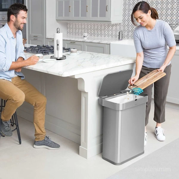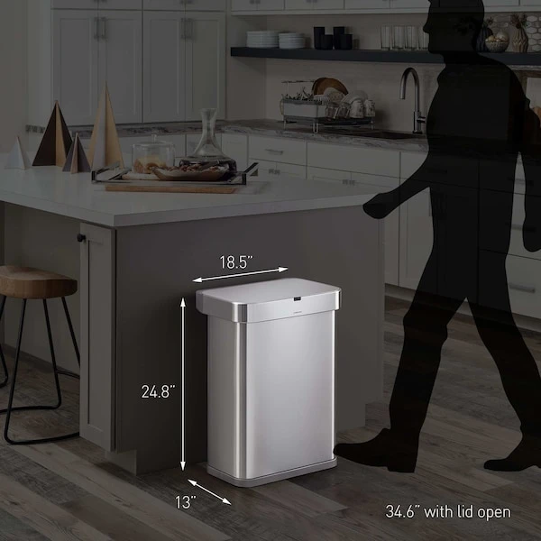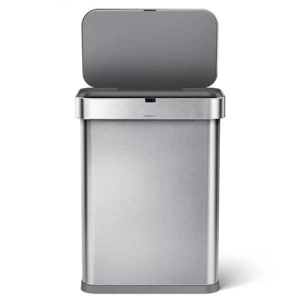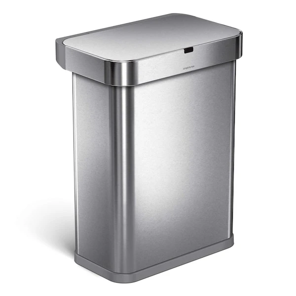 The simplehuman rectangular sensor can with voice control opens at the sound of your voice. Just say, ‘open can’ and the lid opens automatically, so throwing trash away is quick, efficient and hassle-free. You can also say, “stay open” while performing longer chores or cooking, and the lid won’t close until you say, “close can” (or it will close automatically after 10 minutes). It also has a motion sensor that opens the can with a wave of your hand and is smart enough to adapt to you and the surrounding environment — no false triggers, no unexpected lid closures. This can features an innovative ‘liner pocket,’ which stores and dispenses liners from inside the can for a faster liner change. The liner rim lifts up for easy access to the liner, then closes to grip and keep it neatly out of sight. The can’s stainless steel surface is protected by an invisible fingerprint-proof coating that is also infused with Agion®, an EPA-registered antimicrobial that inhibits the growth of bacteria, fungi, mold, and mildew. ADA-compliant.