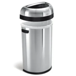 The simplehuman semi-round open can has a flat back for placement against the wall and out of the way, while its open lid design makes it easy to toss in trash on the go. The heavy-gauge stainless steel construction, lift-off lid, and large capacity make it an ideal choice for commercial spaces such as restaurants and coffee shops, or even busy families. ADA-compliant. The code P liner fits this can perfectly — no bunching or slipping for a cleaner trash experience.