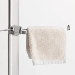 - Towel hangers clip anywhere along aluminum pole.