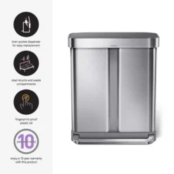 - Custom fit liners – simplehuman code Y liners are designed to fit this can perfectly so they don’t slip, and they stay completely hidden. Extra-thick plastic and double-seam construction prevent rips and tears.