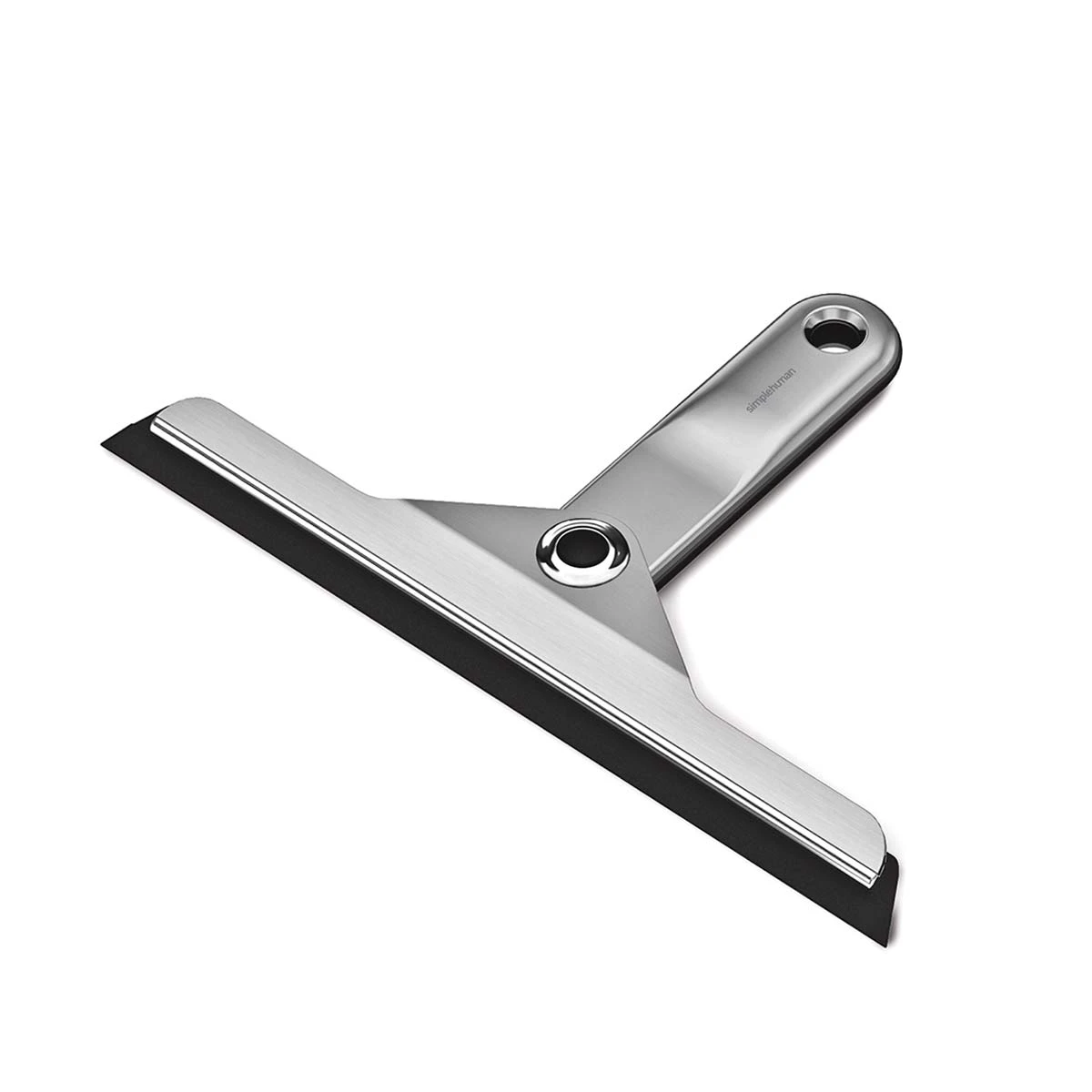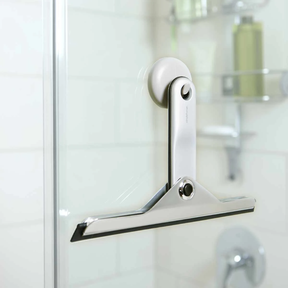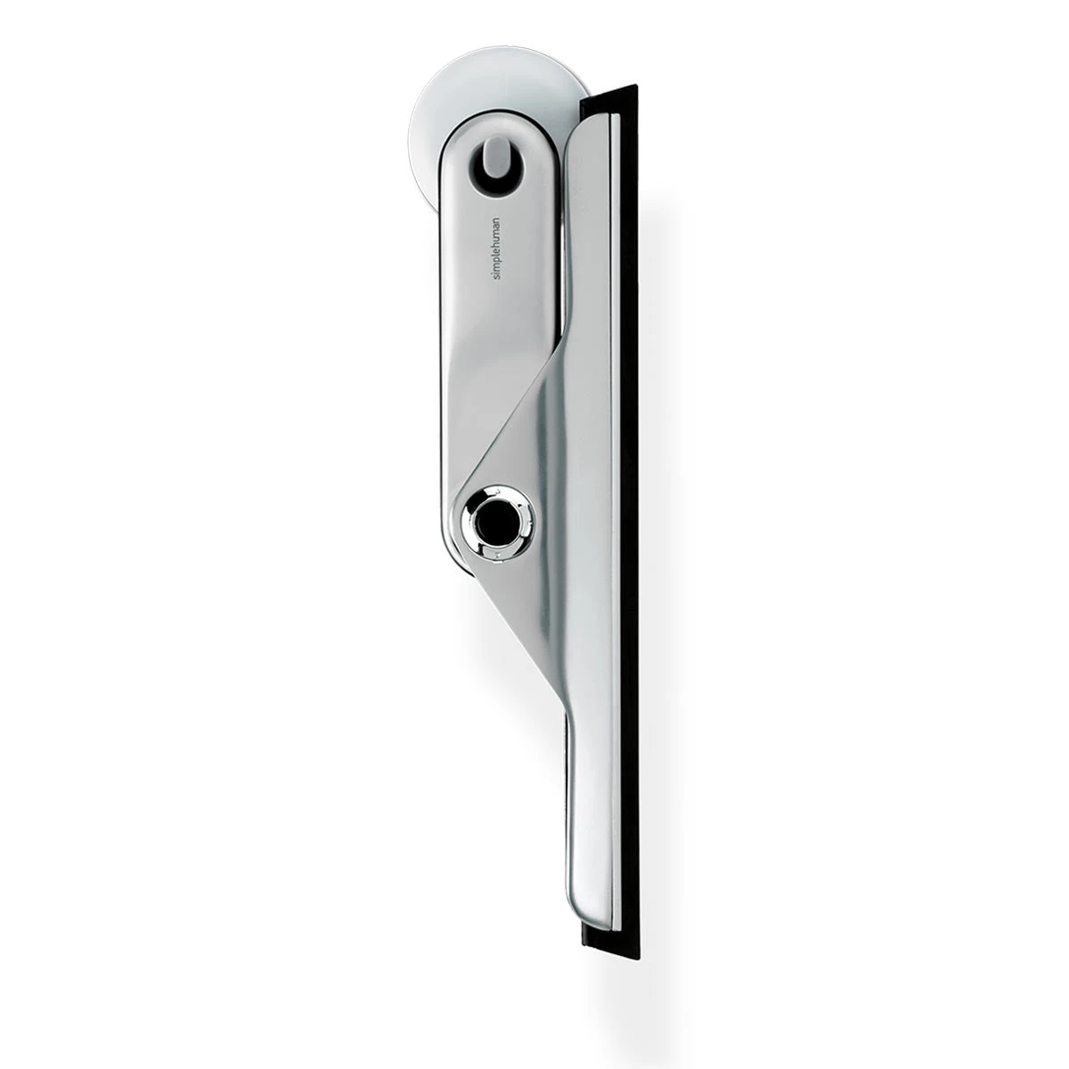 Die-cast zinc handle folds up for easy storage. Precisely angled blade and weighted handle are designed to smoothly glide across glass surfaces for an easy, streak-free clean. Includes a suction cup for convenient hanging and storage.