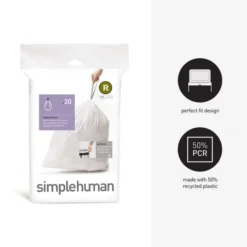 - Custom fit liners – simplehuman code M liners are designed to fit this can perfectly so they don’t slip, and they stay completely hidden. Extra-thick plastic and double-seam construction prevent rips and tears.