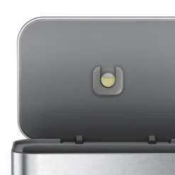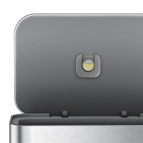 - Silent close lid – The simplehuman patented lid shox® technology controls the motion of the lid for a slow, silent close.