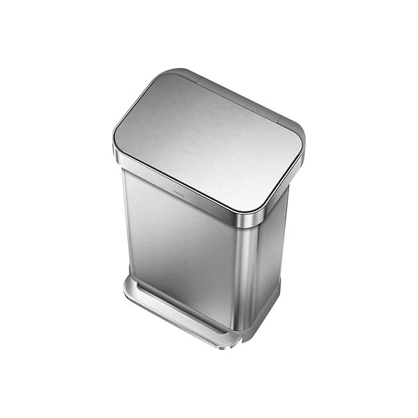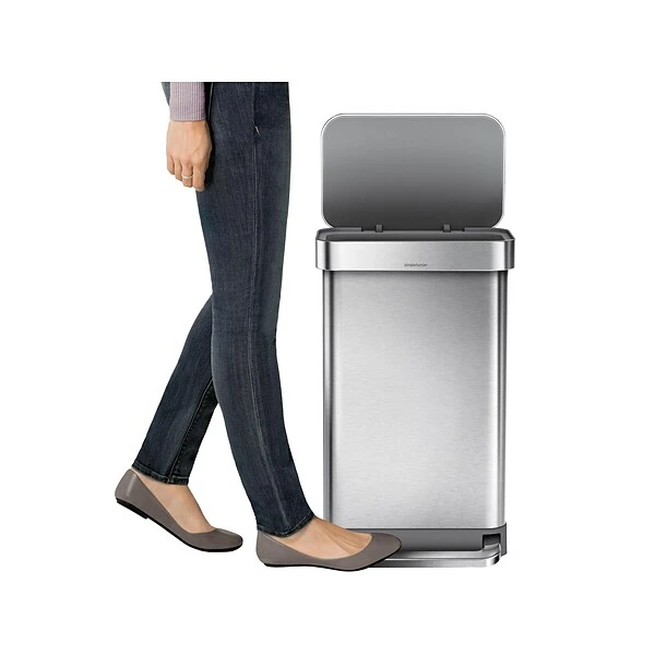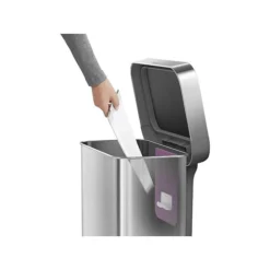 The simplehuman stainless steel rectangular step can features an innovative ‘liner pocket’ that stores and dispenses liners from inside the can for a faster liner change. The stainless steel liner rim grips the liner and keeps it hidden. And with no inner bucket, there’s more space for trash. Strong wide steel pedal is designed to last, and the patented lid shox technology ensures a smooth, silent close every time. Code M liner refill packs store perfectly in this can’s liner pocket.