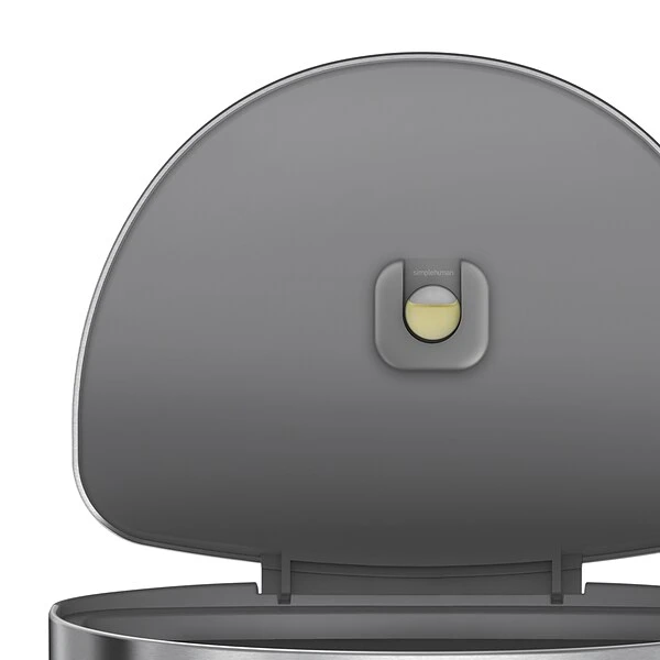 - Silent close lid – The simplehuman patented lid shox® technology controls the motion of the lid for a slow, silent close.