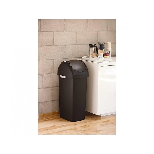 - Balanced swing lid – Center-weighted swing lid opens easily and then gently swings back into place.