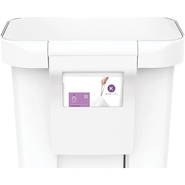 The simplehuman rectangular step can features an innovative ‘liner pocket’ that stores and dispenses liners from inside the can for a faster liner change. The stainless steel liner rim grips the liner and keeps it hidden. And with no inner bucket, there’s more space for trash. Strong wide steel pedal is designed to last, and our patented lid shox technology ensures a smooth, silent close every time. Code K liner refill packs store perfectly in this can’s liner pocket.