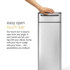 Streamline your kitchen cleanup with this unique opening bin. Its unique touch-bar ensures easy opening from any angle, ideal for a busy kitchen environment. With a spacious 40 Litre capacity, this is great for keeping your kitchen clean and organised.
