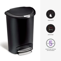Perfect for adding to the corner of your room without taking up too much space, this 50 Litre bin blends seamlessly into its surroundings. With its semi-round shape this bin is designed to fit snuggly against walls. From sight to sound say goodbye to loud bangs with its soft closing lid from Simple Humans patented lid shox technology.