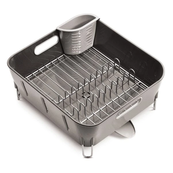 Declutter your sink space with this Simple Human dishrack. Its compact design fits most standard sinks, freeing up valuable counter space. Featuring a swivel spout for easy drainage and a flood free sink.