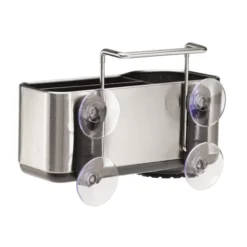 Crafted from stainless steel, this sink caddy from the simplehuman range includes removable plastic dividers, four suction cups and a wire ledge to easily secure the caddy to a sink. Five year guarantee included.